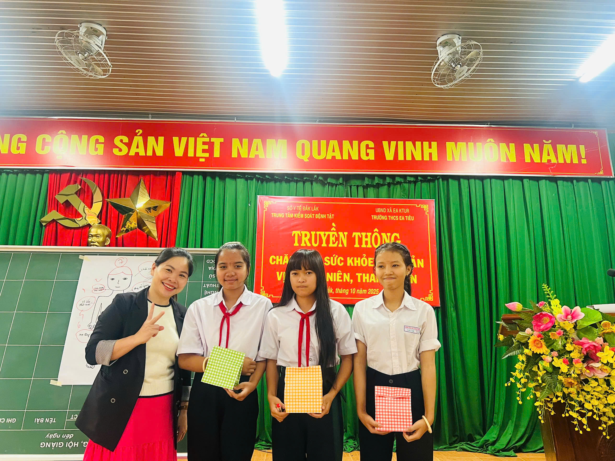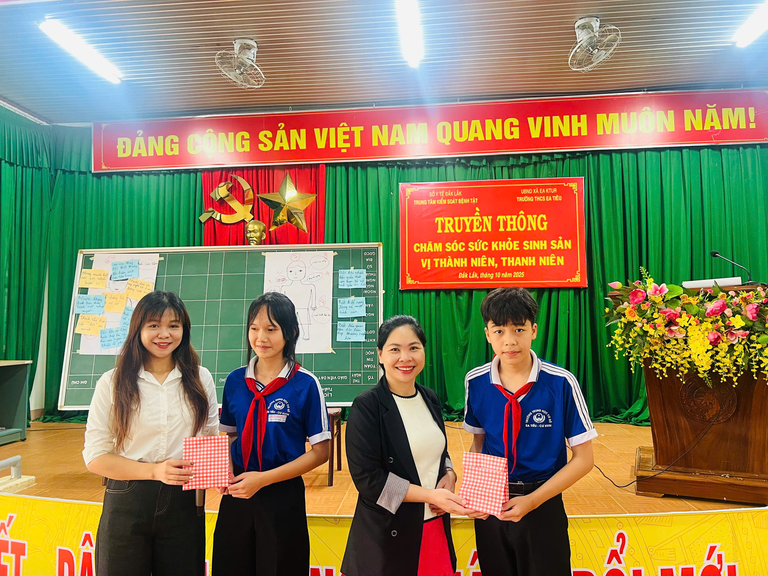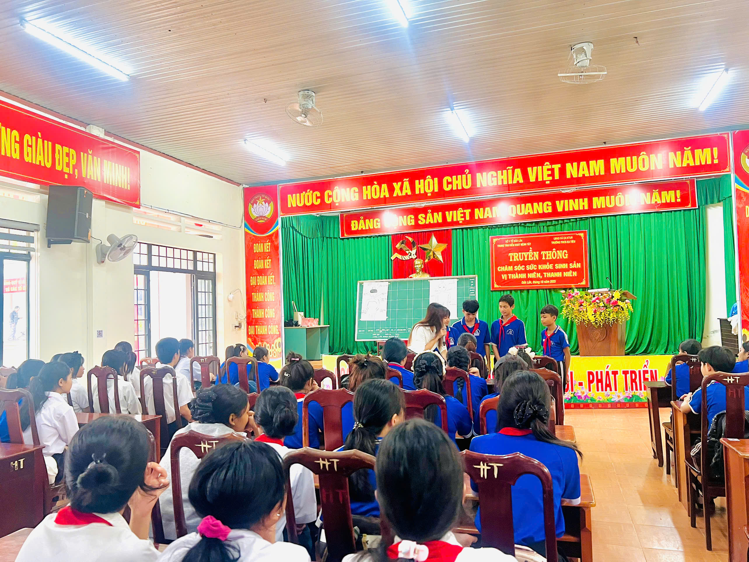 Sáng nay, ngày 27.10.2025 TRUNG TÂM KIỂM SOÁT BỆNH TẬT (thuộc Sở Y Tế tỉnh Đăk Lăk) phối hợp với Trường THCS Ea Tiêu xã Ea KTur tổ chức Truyền thông chăm sóc sức khỏe sinh sản vị thành niên, thanh niên cho học sinh Trường THCS Ea Tiêu. Tham dự có toàn bộ các em học sinh khối lớp 9.