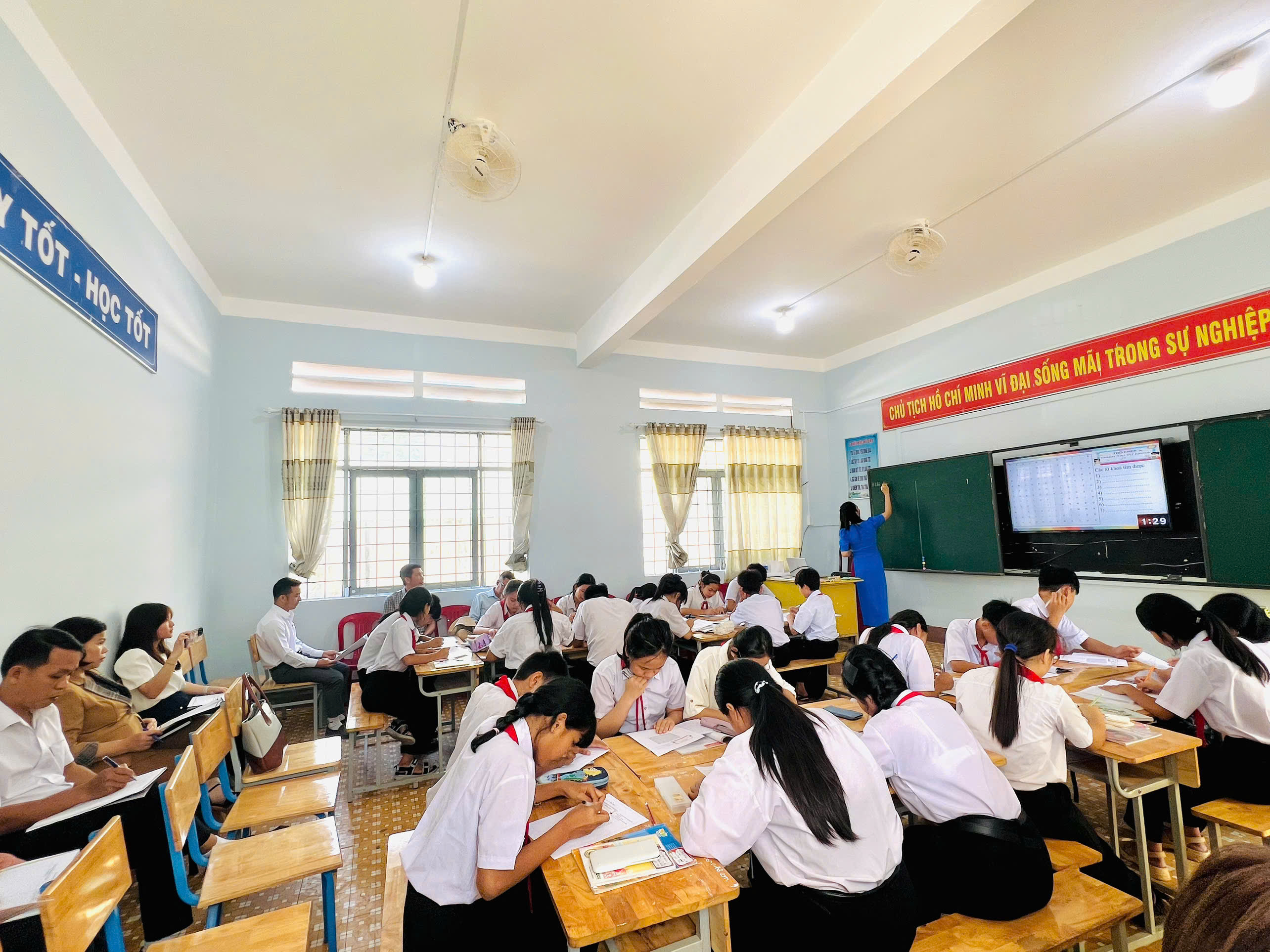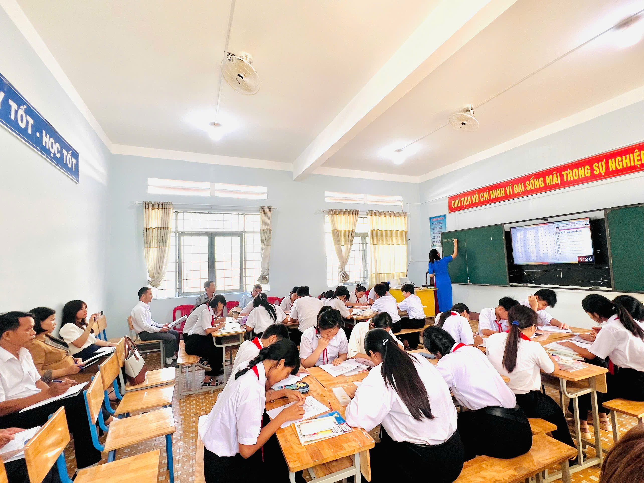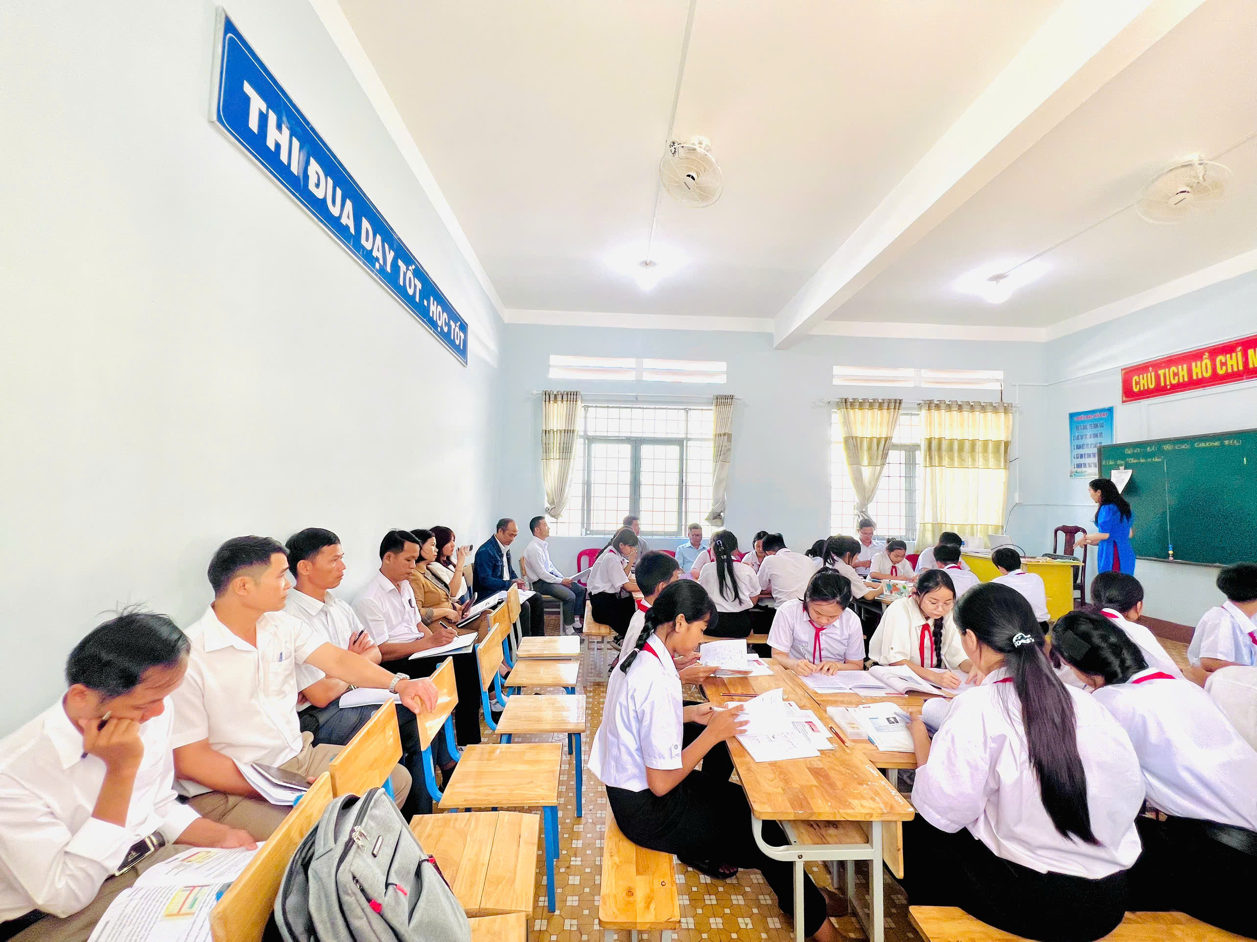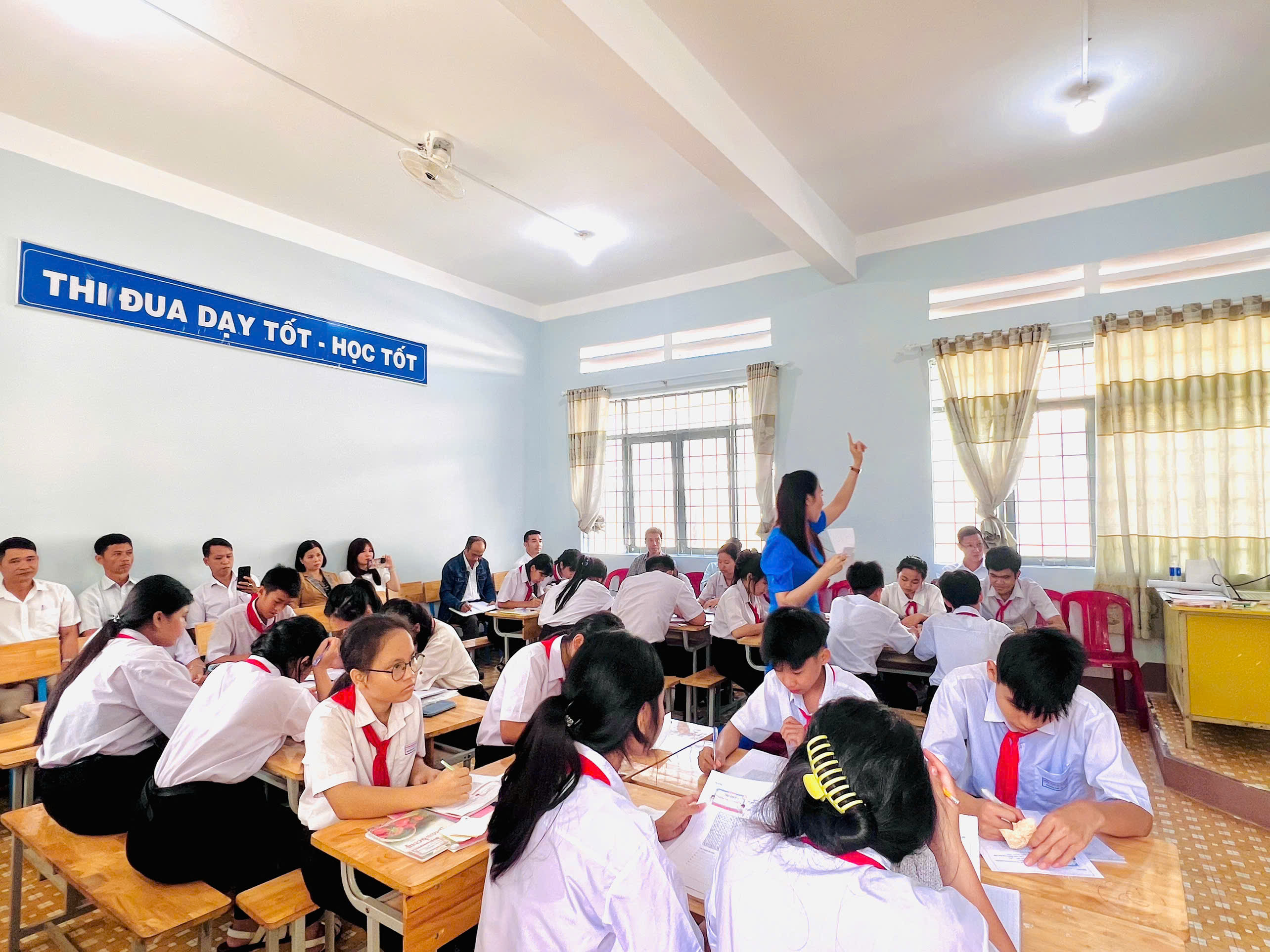 Sau khi thống nhất các nội dung họp, lãnh đạo các đơn vị và giáo viên bộ môn Toán tham gia dự 1 tiết dạy minh họa bộ môn Toán do cô Bùi Bích Phương, giáo viên Trường THCS Ea Tiêu đảm nhận.