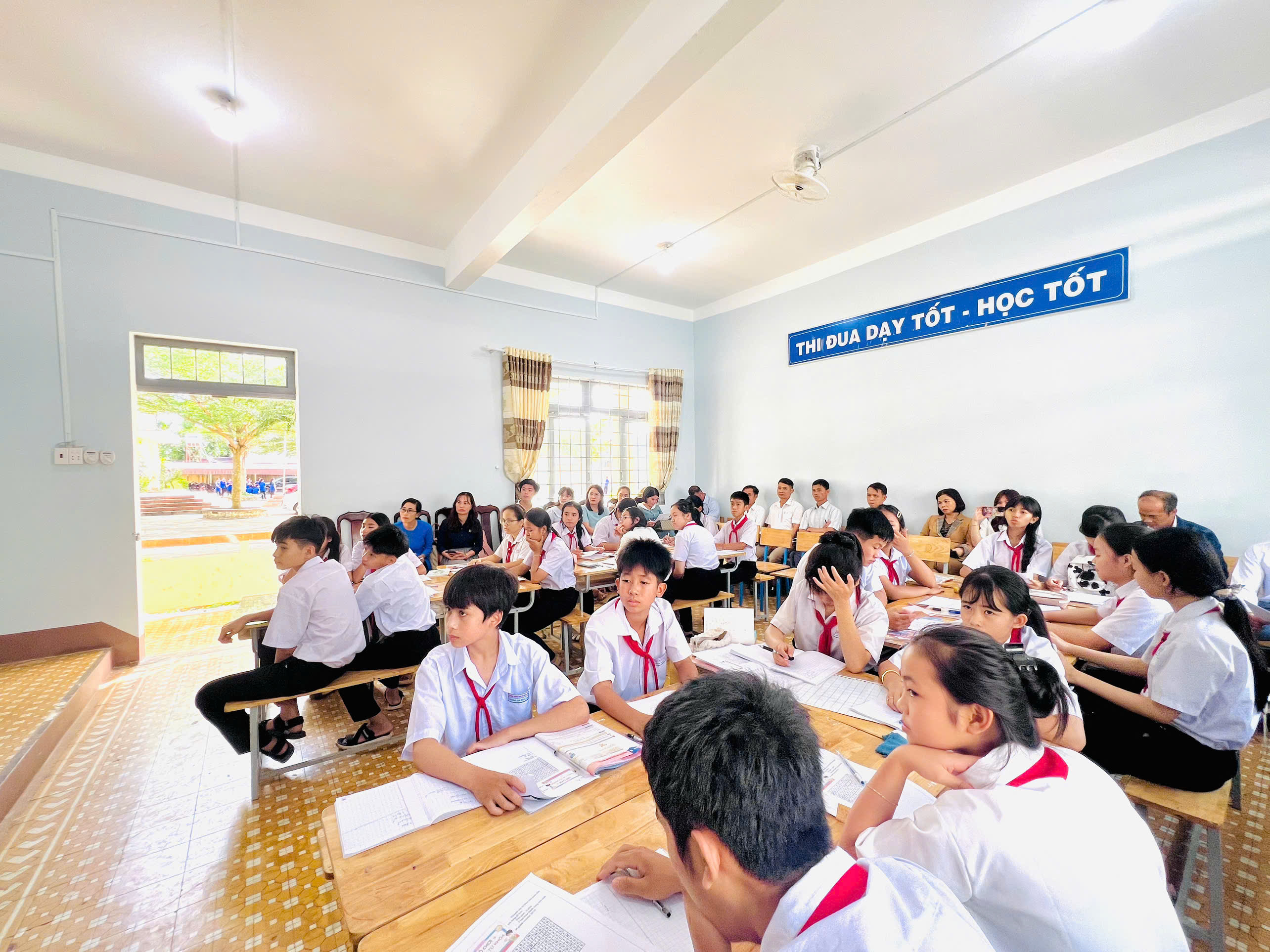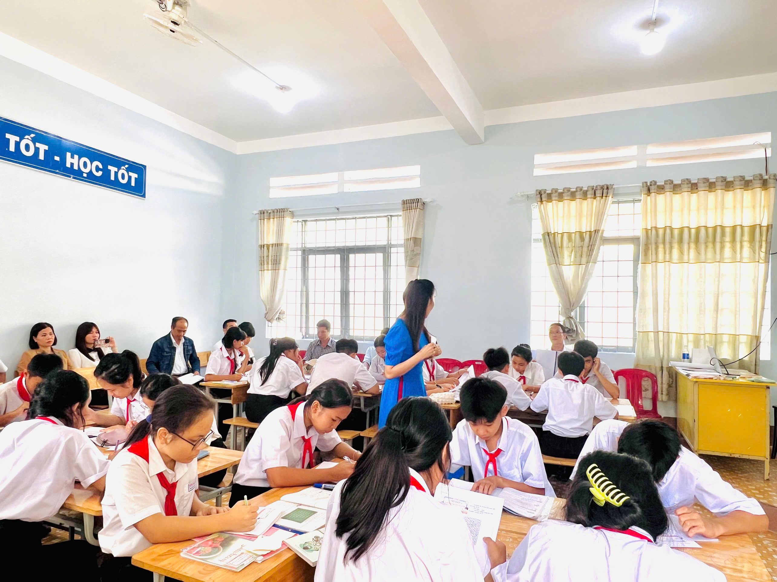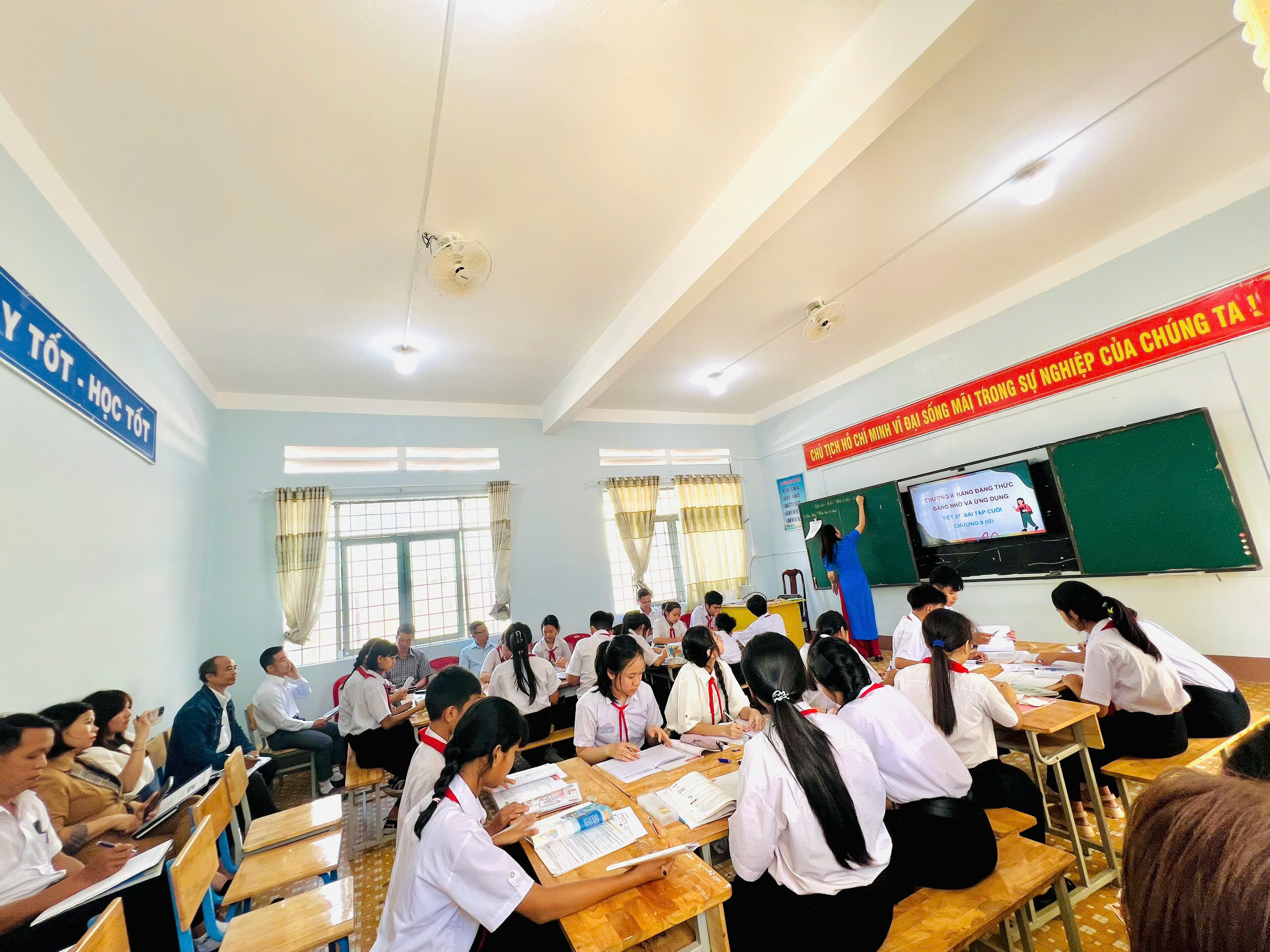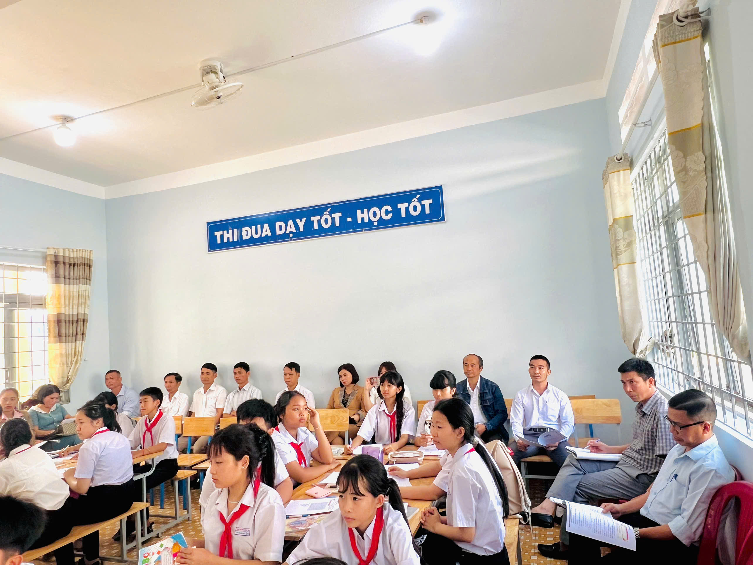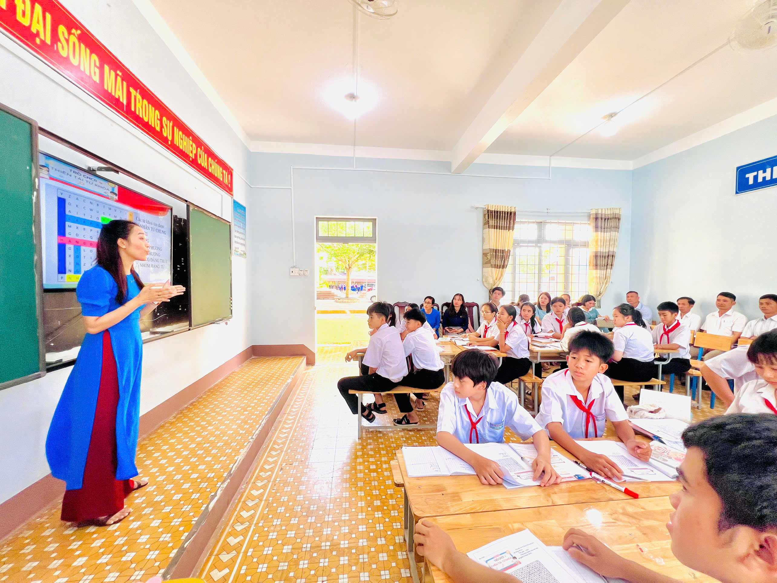 Sau khi thống nhất các nội dung họp, lãnh đạo các đơn vị và giáo viên bộ môn Toán tham gia dự 1 tiết dạy minh họa bộ môn Toán do cô Bùi Bích Phương, giáo viên Trường THCS Ea Tiêu đảm nhận.