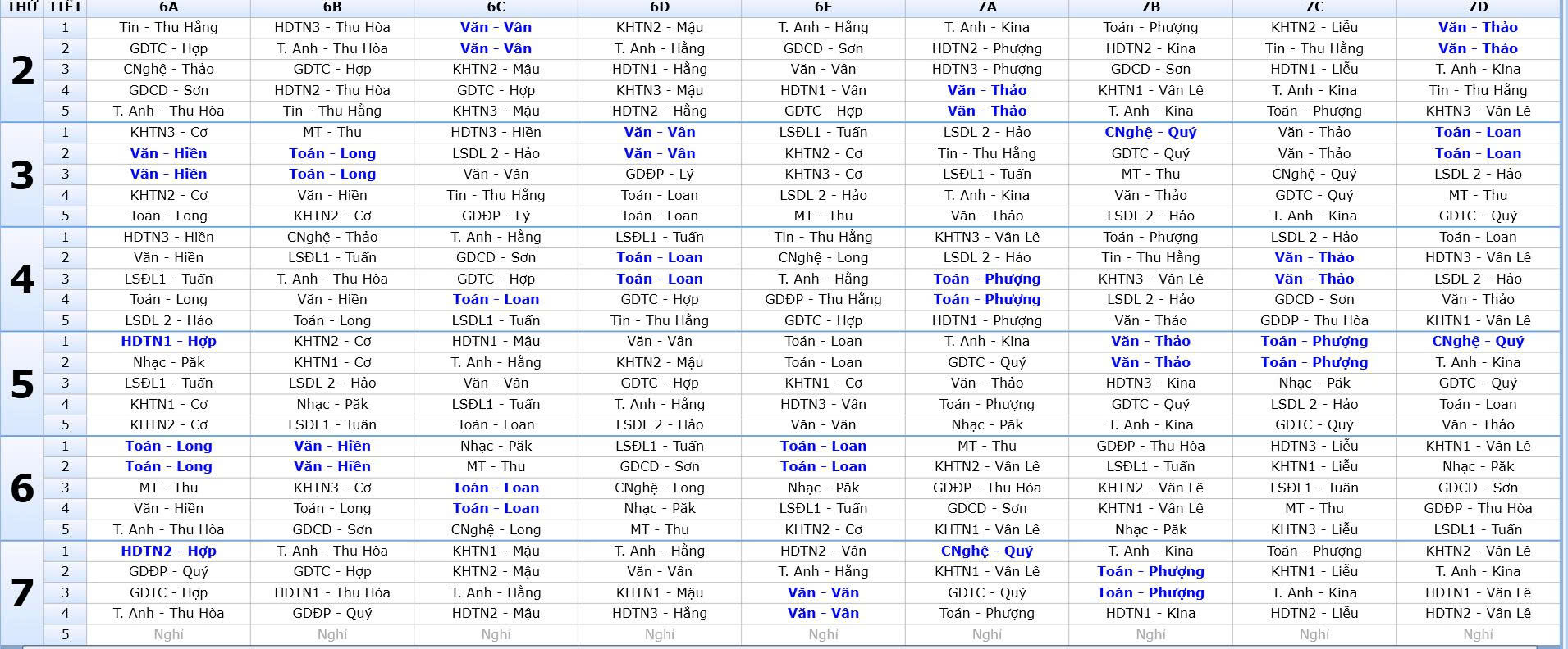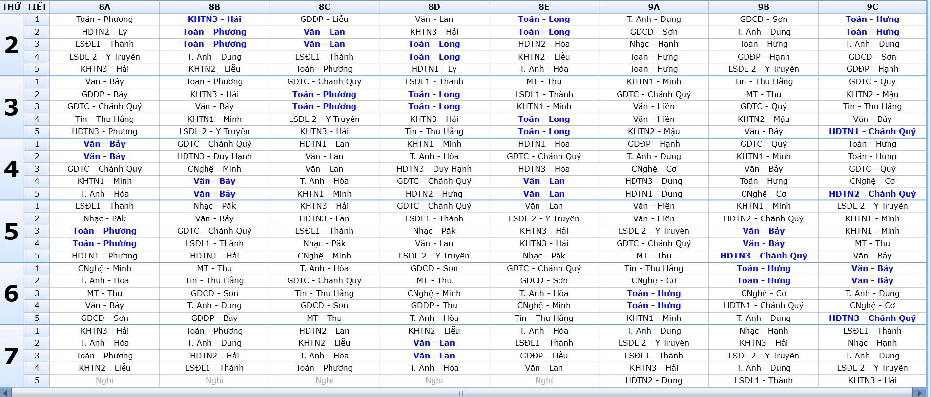 Thời khóa biểu (Áp dụng từ ngày 08-4-2025)