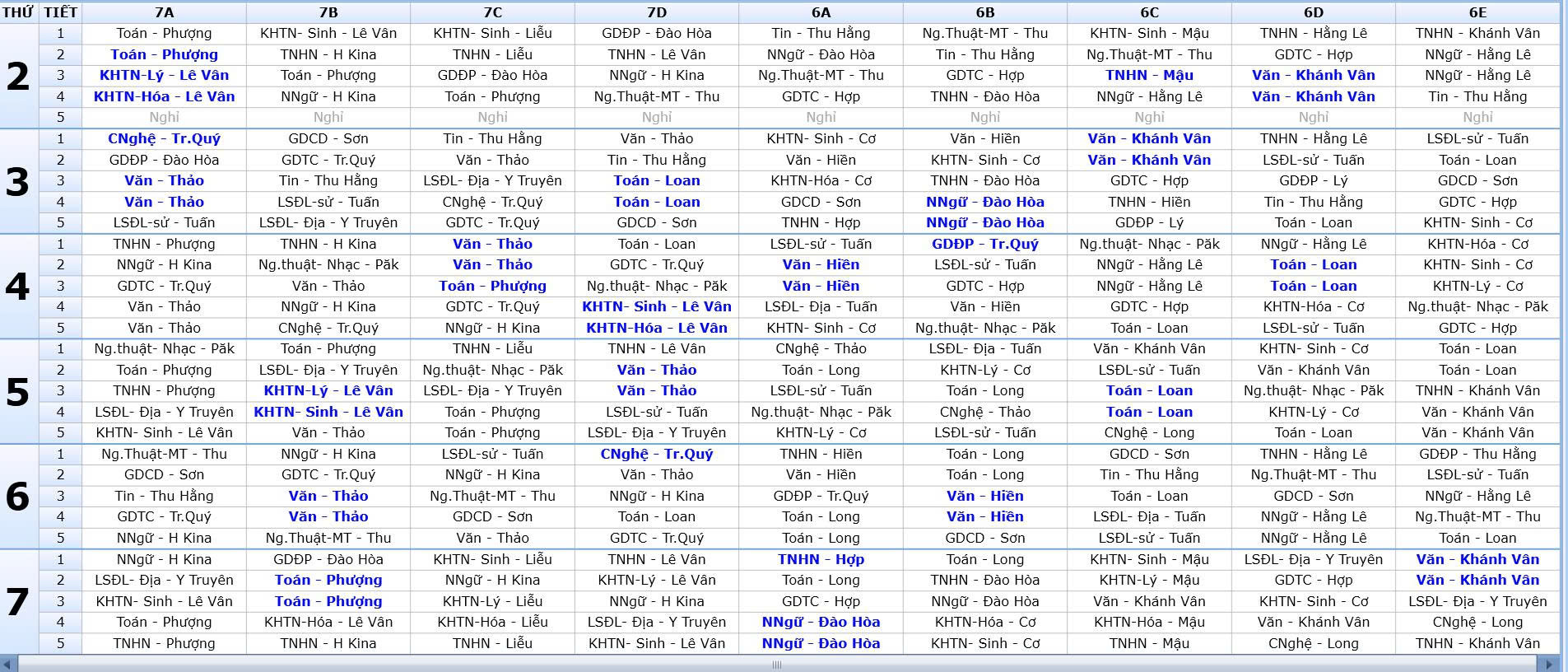 THỜI KHÓA BIỂU HỌC KỲ II (áp dụng từ ngày 19/01/2026)
