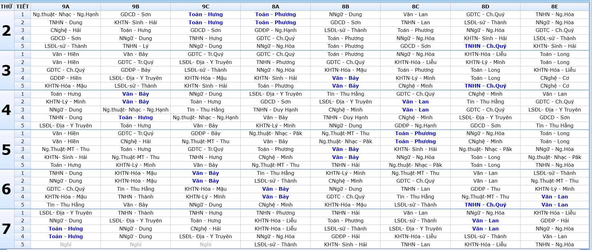 Thời khóa biểu (Áp dụng từ ngày 08-4-2025)