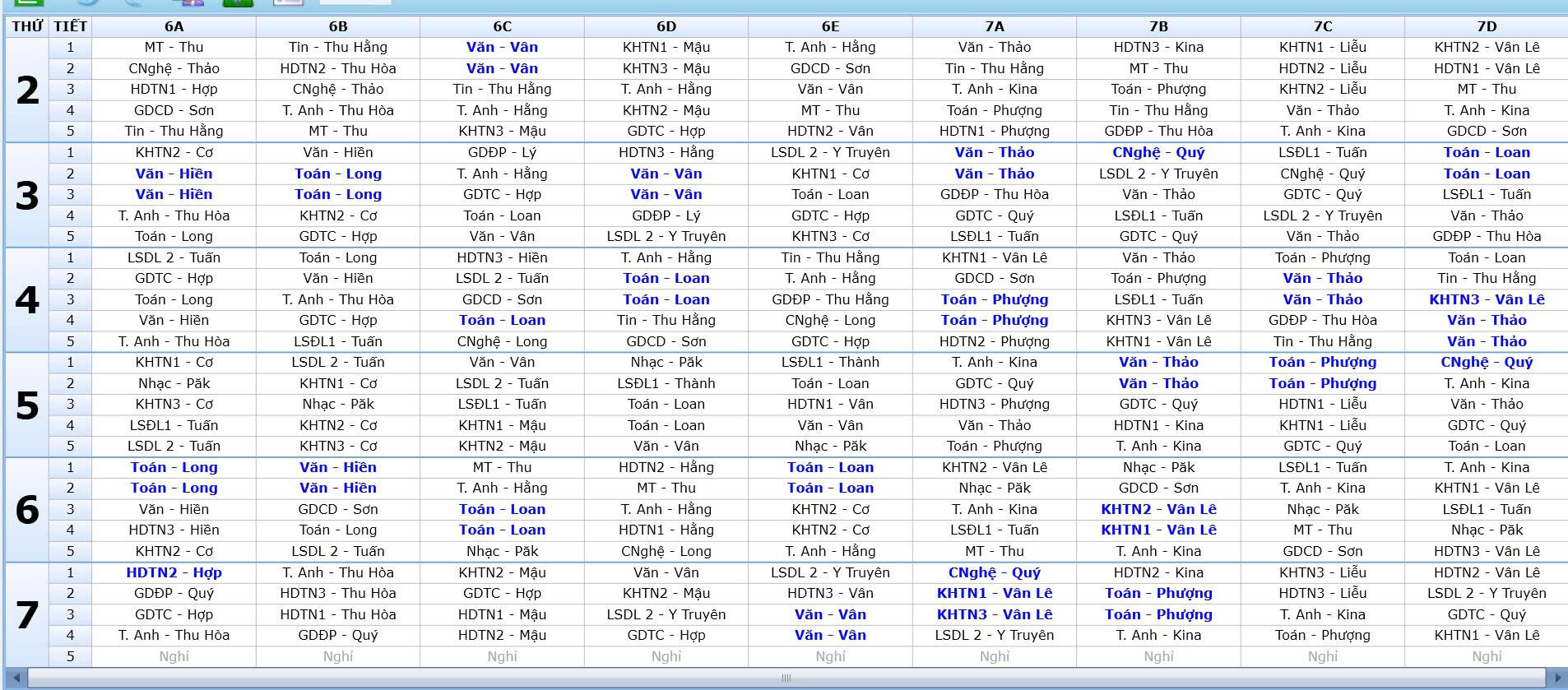 Thời khóa biểu (Áp dụng từ ngày 08-4-2025)