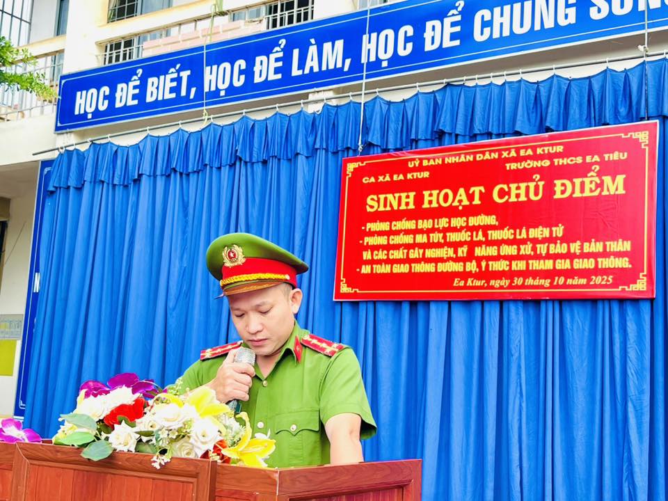 Sáng ngày 30.10.2025, Trường THCS Ea Tiêu phối hợp với Công An xã Ea Ktur tổ chức buổi sinh hoạt chủ điểm với các nội dung thiết thực: